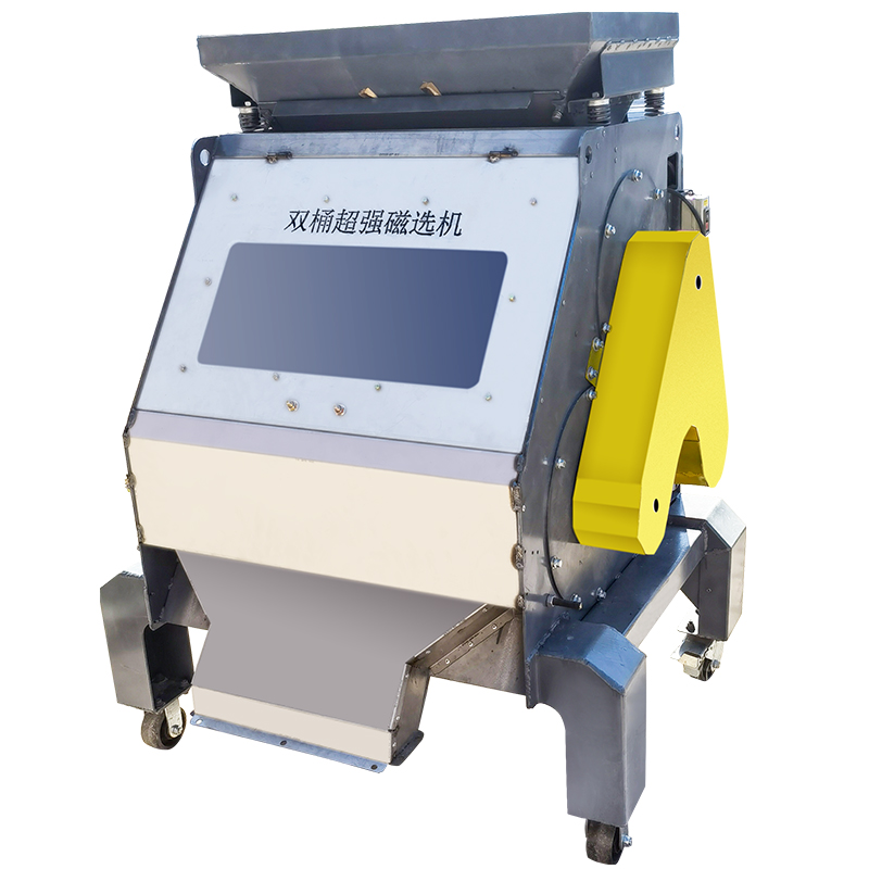 石英砂磁選機(jī)是騰博機(jī)械設(shè)備廠研發(fā)出的用來分選石英沙、石英粉、玻璃粉、香料粉、活性炭、碳粉、板材沙、鑄造砂等粉狀料中的鐵粉的一款磁選器。該機(jī)器磁場強(qiáng)度大,采用雙滾筒制作,上滾筒筒皮外4000高斯左右,下滾筒筒皮外8000高斯左右,可連續(xù)不斷的將磁性物與非磁性物進(jìn)行分離處理,除鐵效率高,節(jié)省人工,是石材廠、玻璃廠、調(diào)料廠等廠家鐵粉除雜的理想產(chǎn)品。