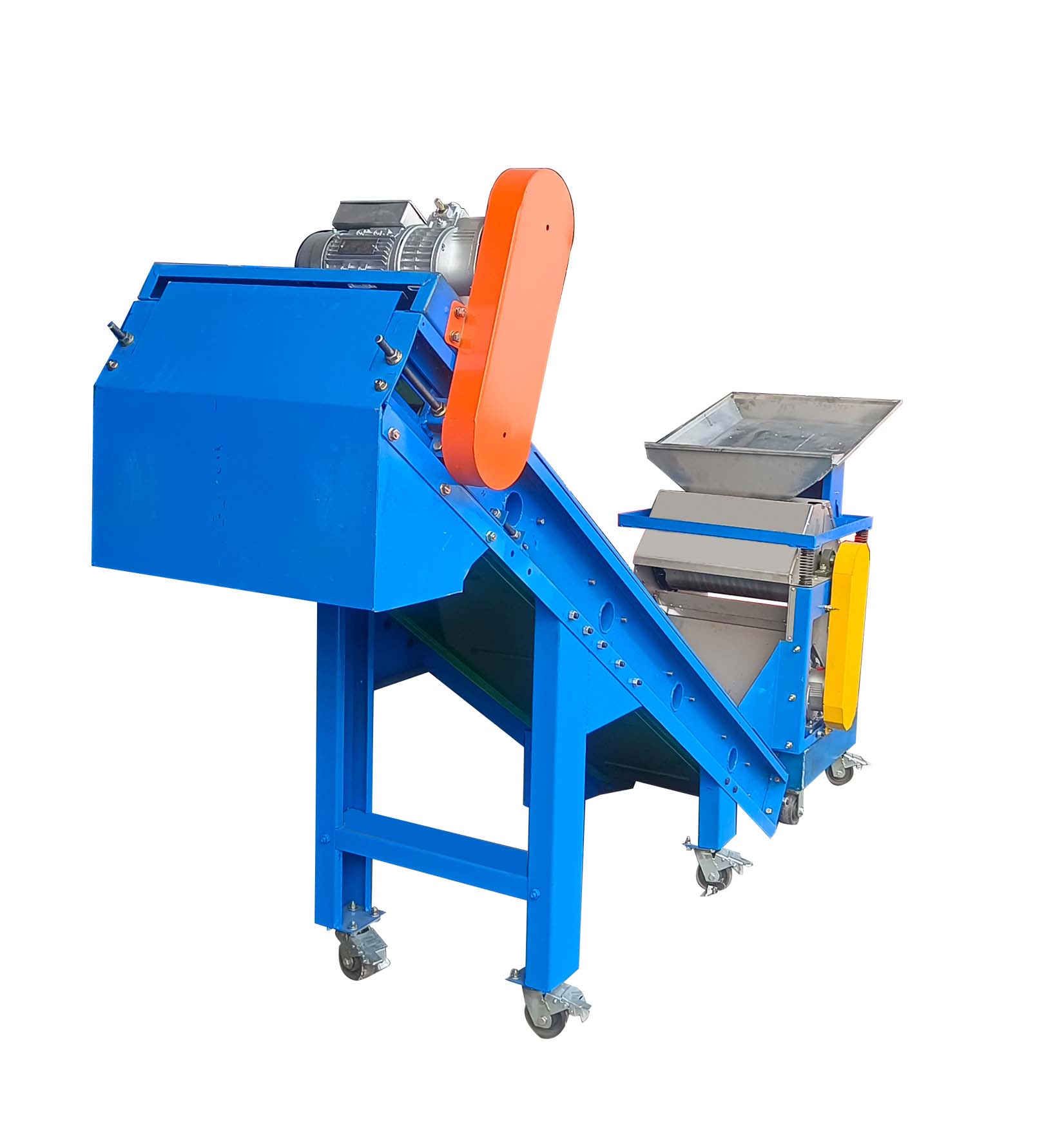 本產(chǎn)品鋁和不銹鋼磁選機(jī)(不銹鋼分選機(jī))主要由入料裝置、永磁滾筒、出料輸送機(jī)、減速機(jī)等組成,給料均勻,出料無(wú)縫對(duì)接輸送機(jī),物料均勻給料振動(dòng)給料斗,經(jīng)過(guò)半磁滾筒,鋁銷(xiāo)等非磁性材料經(jīng)過(guò)輸送機(jī),出料處可接噸袋,鐵等非磁性材料從另外出口出來(lái),從而實(shí)現(xiàn)磁性材料和非磁性材料的分離。是有色金屬?gòu)S、廢舊回收廠(chǎng)等的除鐵幫手。
